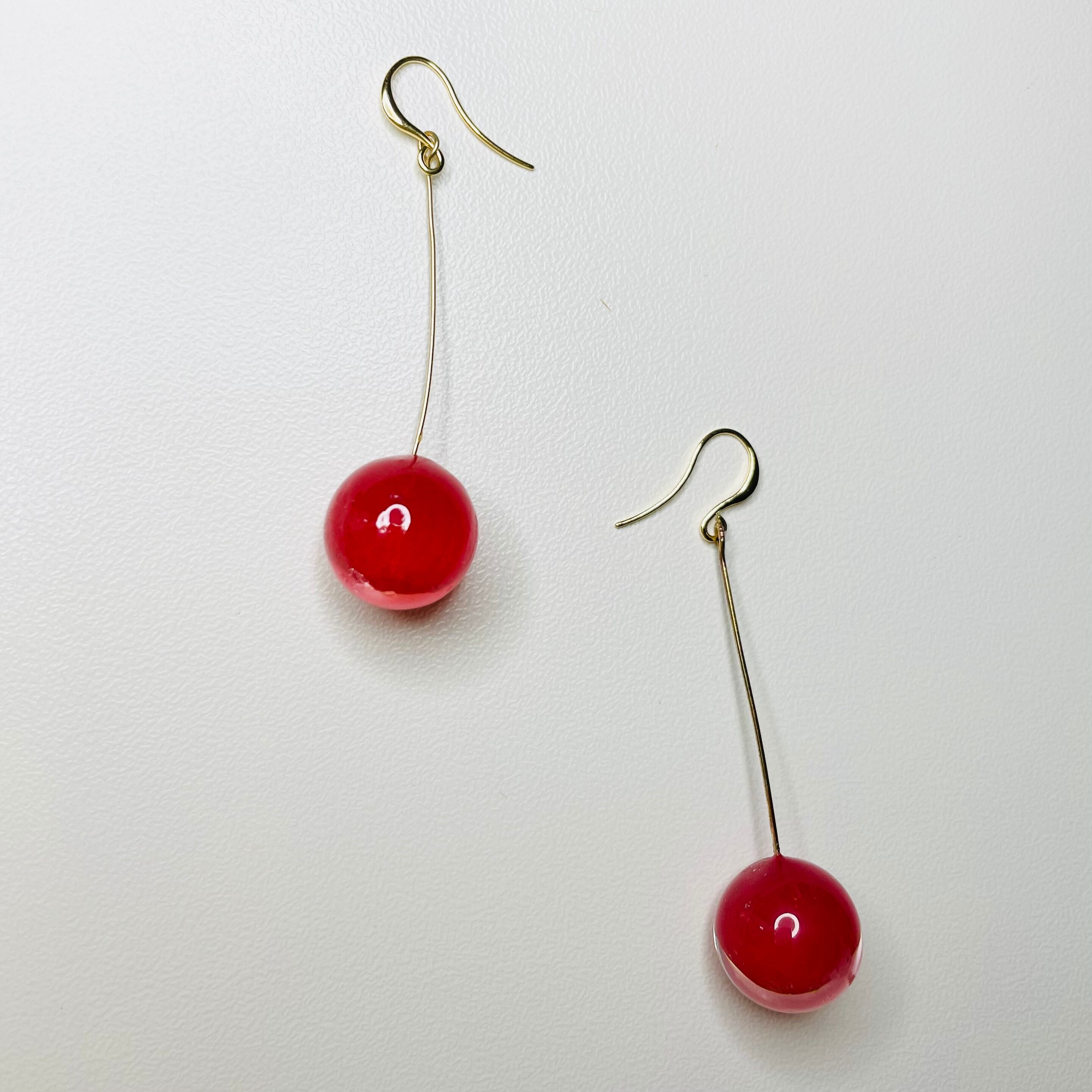 さくらんぼをモチーフにしたピアス。 1点1点を着色、制作しているので、それぞれに個性のある色味に仕上がっています。 [ 金属構成 ] ピアス部:16KGP in 高品質真鍮 金具部:18KGP in サージカルステンレス *イヤリング変更可能 (※18KGP in サージカルステンレス )